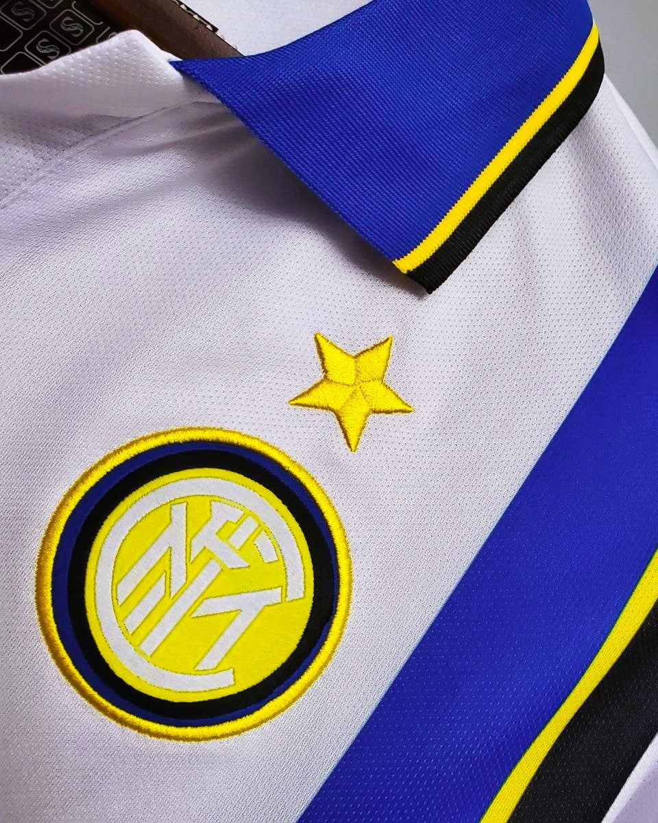 Benvenuti nella storia dell'Inter con la maglia 1997-98 indossata con il numero 10 da RONALDO. Questo capolavoro prodotto da Umbro e arricchito dalla patch della Serie A, è un tributo alla classe senza eguali del "Fenomeno" brasiliano e al suo incredibile talento che ha incantato i tifosi di tutto il mondo ergendolo a leggenda del calcio mondiale