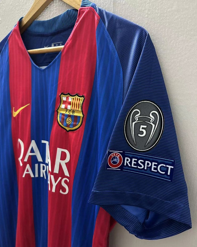 Rive the blaugrana history with the Barcelona jersey of the 2016-17 season and the number 10 of LIONEL MESSI, the Argentinean star and absolute ruler of world football. Made by Nike and embellished with Champions League patches, it is humanly one of the most loved uniforms by the Catalan fans.