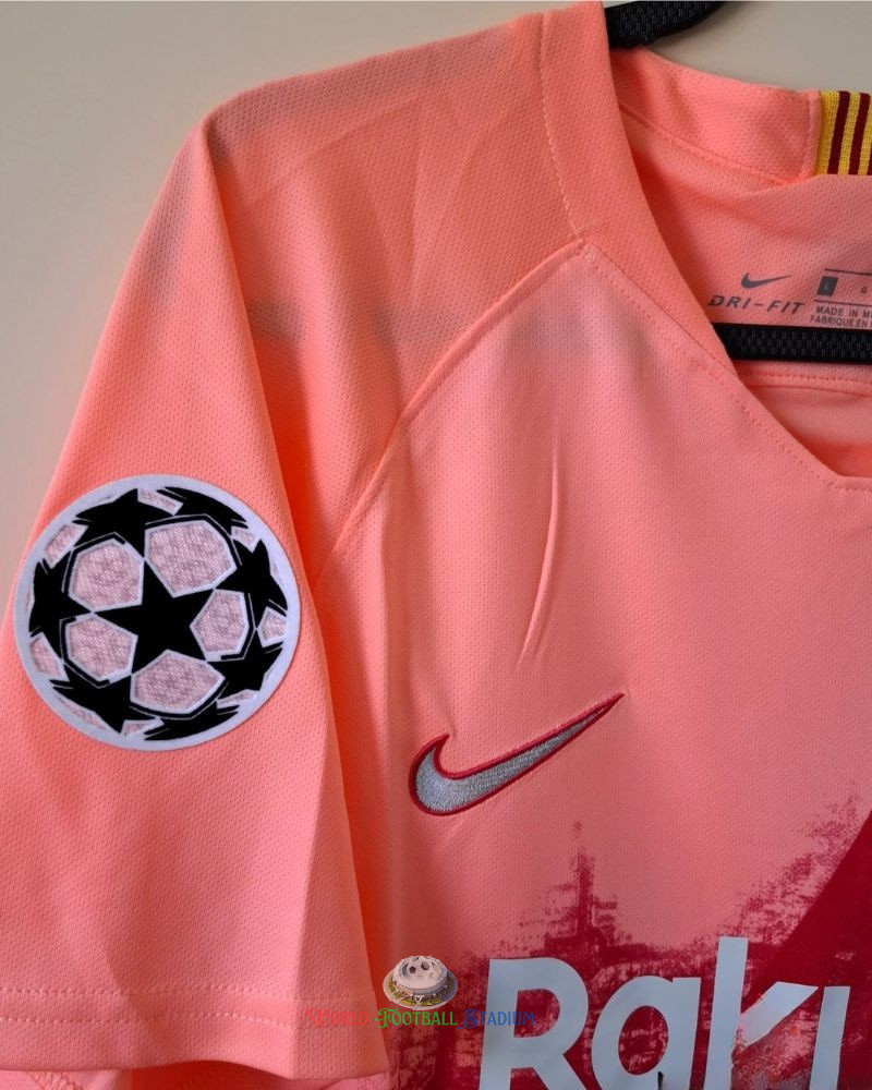 Rivivi la storia del grande calcio grazie alla maglia del Barcellona della stagione 2018-219 con il numero 10 di LIONEL MESSI. Arricchita con le patch della Champions League su entrambe le maniche, evidenzia la personalizzazione del fenomenale fuoriclasse argentino ad elevarne ulteriormente il prestigio