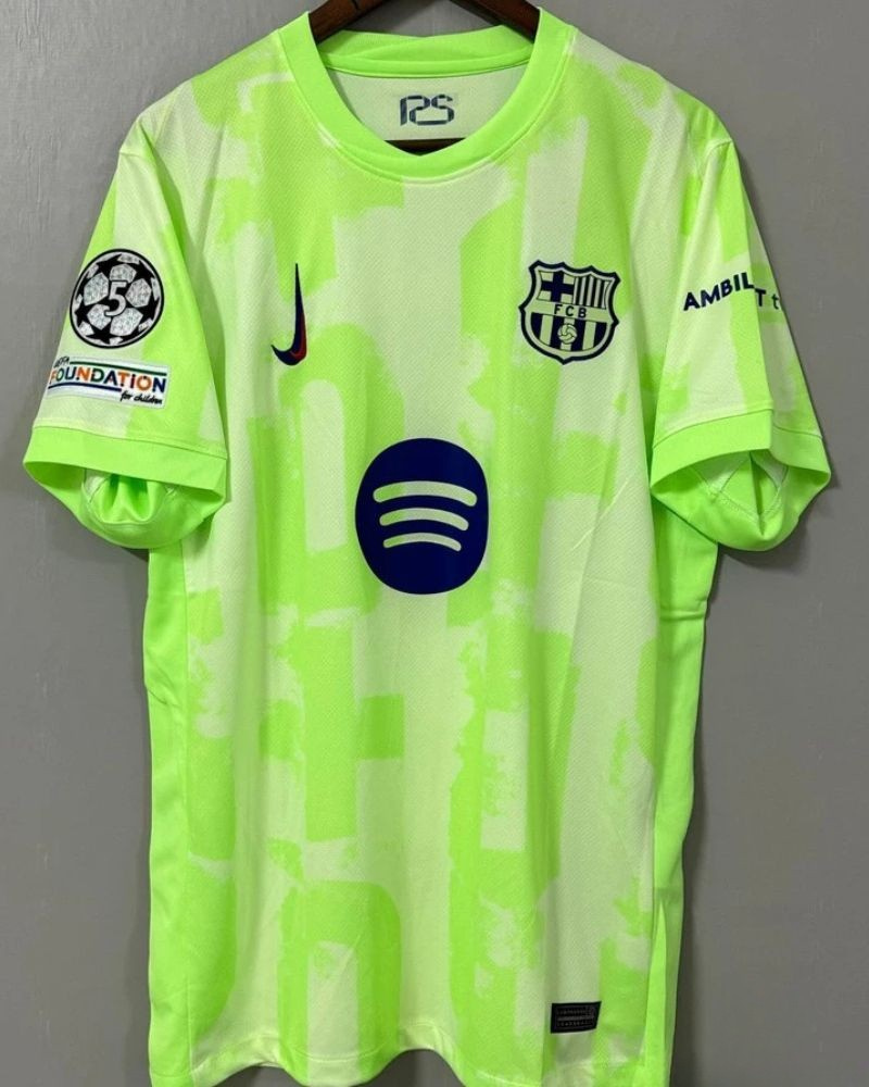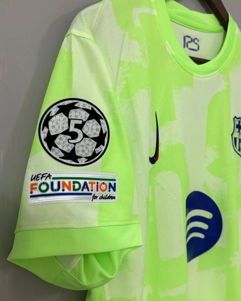 La maglia numero 19 di LAMINE YAMAL del Barcellona della stagione 2024-25 è una perla di moderno design. Arricchita dalla patch della Champions League, esalta il fascino del Barca evidenziando la personalizzazione del fenomenale giocatore spagnolo sicuro protagonista del prossimo calcio mondiale