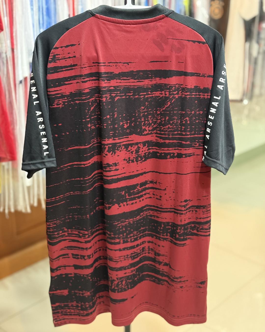 La maglia pre-partita dell'Arsenal per la stagione 2020-2021, realizzata da Adidas, presenta un design distintivo che combina elementi dei tre kit ufficiali del club per la stessa stagione. Questa combinazione di dettagli crea un look unico e riconoscibile, pensato per distinguersi sia in campo che fuori.