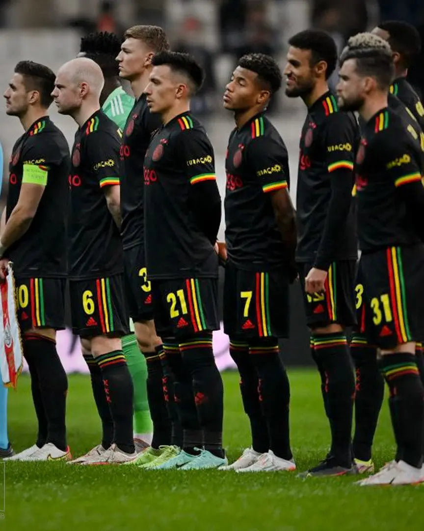 One of the most beautiful jerseys ever, the Ajax 2021-22 jersey dedicated to the great BOB MARLEY. The black embraced by the colours of the Jamaican flag, the red inserts and the 'three little birds' reproduced behind the collar represent an absolute masterpiece of fashion-design for one of the most popular jerseys.