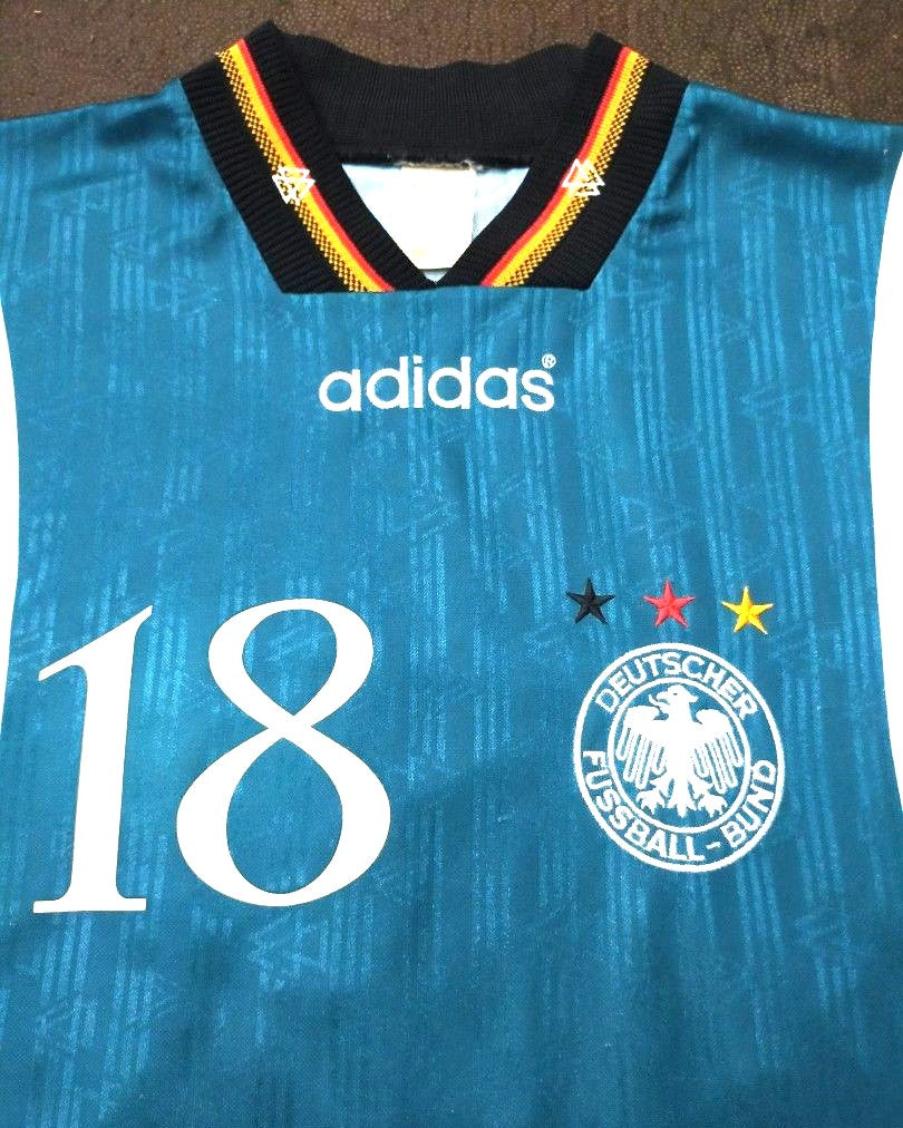 Vivi l'epopea del grande calcio del 1996-97 grazie alla maglia della Germania con il numero 18 di JURGEN KLINSMANN. Questo gioiello assoluto è un monumento alla gloria e alla determinazione della squadra teutonica, guidata dal fenomenale e leggendario attaccante tedesco