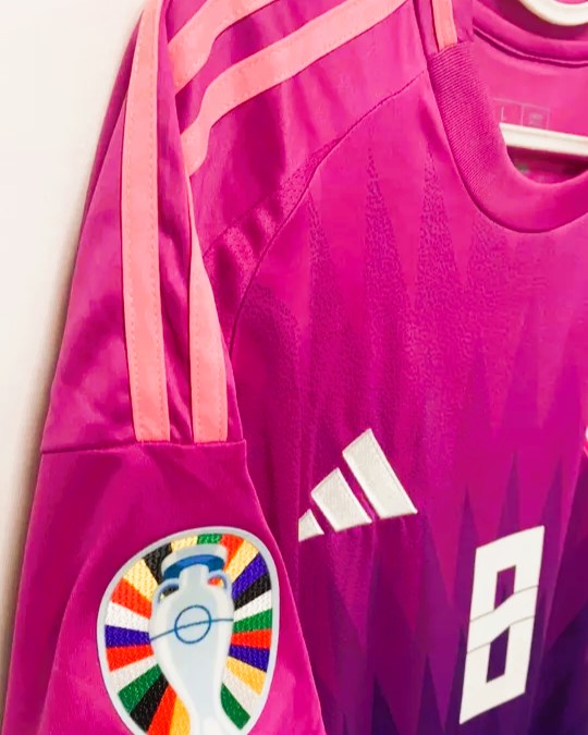 La maglia della Germania 2024-25 con il numero 8 di TONI KROOS, è un vero capolavoro di stile e design realizzato da Adidas. Arricchito dalle patch di Euro '24, ha la personalizzazione del fuoriclasse tedesco ad elevarne ulteriormente il prestigio