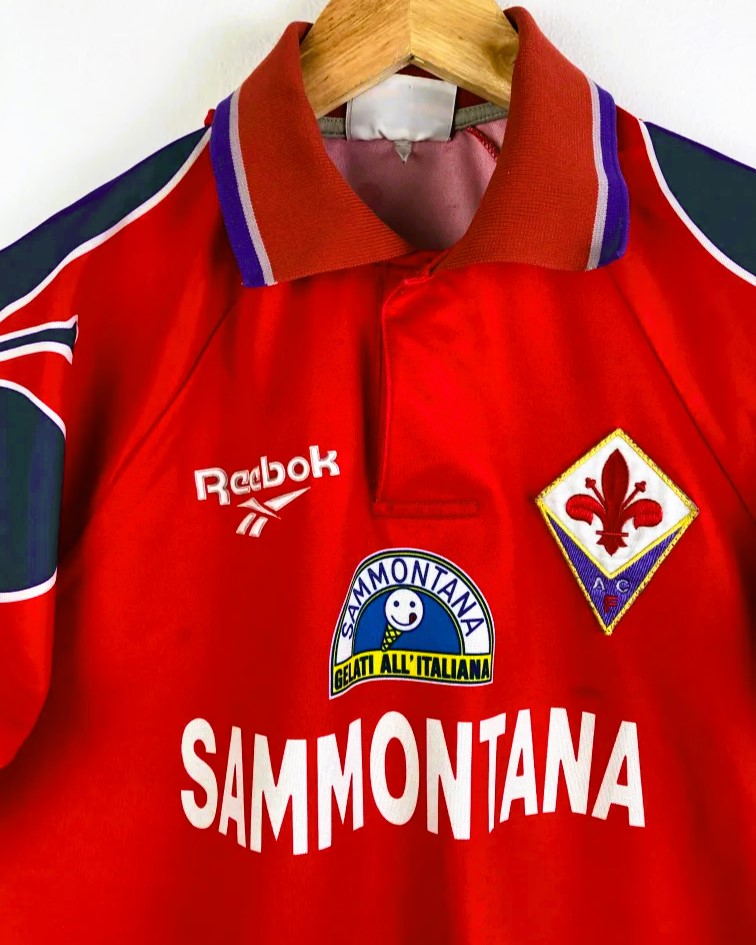Rivivi l'eredità leggendaria del calcio con la maglia numero 9 della Fiorentina di GABRIEL OMAR BATISTUTA nella stagione 1998-99. Un capolavoro con il giglio sulle spalle che rispetta la tradizione viola e omaggia il fenomenale Batigol, idolo assoluto e leggenda del club di Firenze
