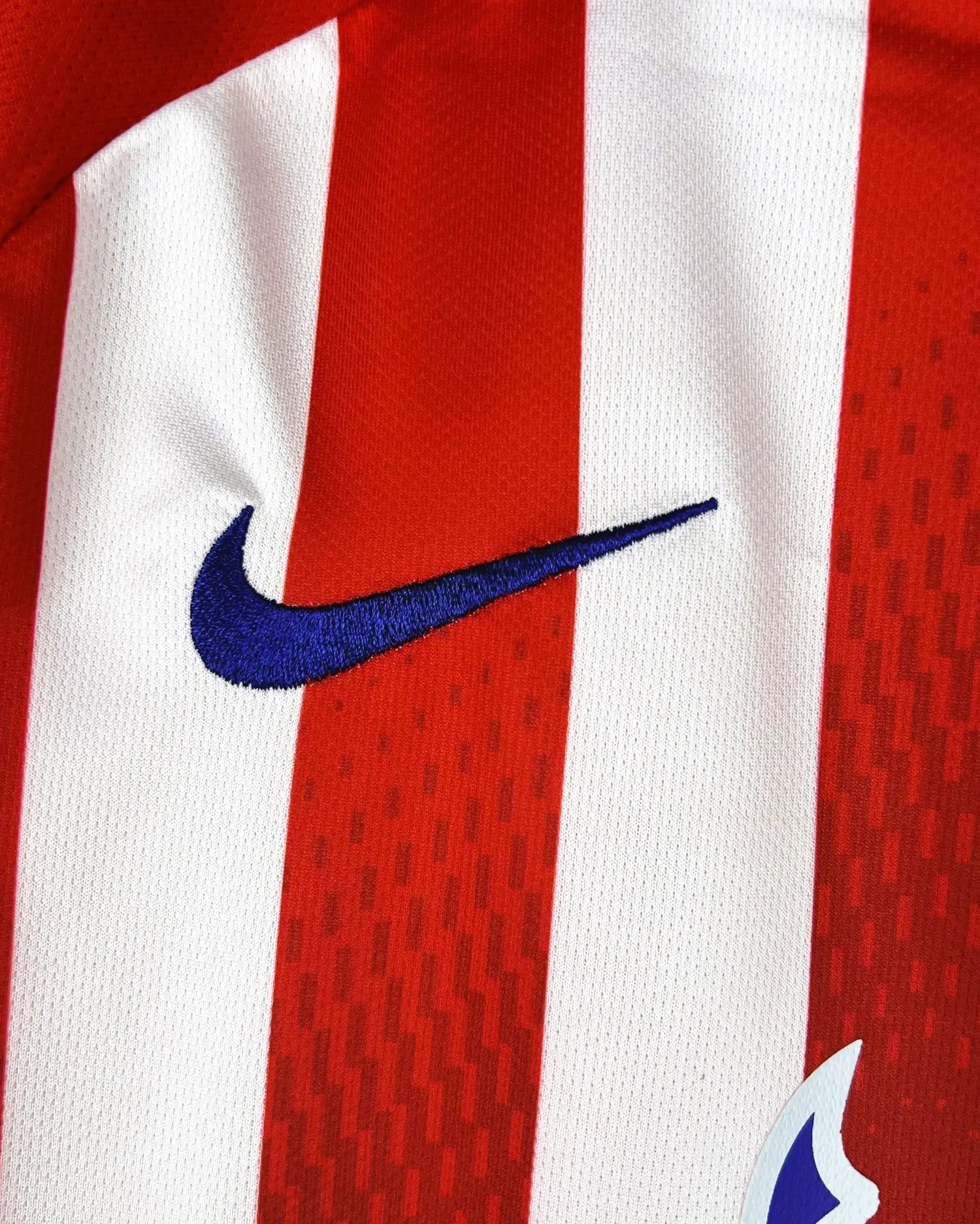 The passion of the fans and the talent of the French player, all summed up in this Atletico Madrid shirt from the 2023-24 season. With ANTOINE GRIEZMANN's number 8 and the La Liga patch to further enhance its prestige, it is a must-have uniform with the personalisation of the colchoneros' all-time top-scorer