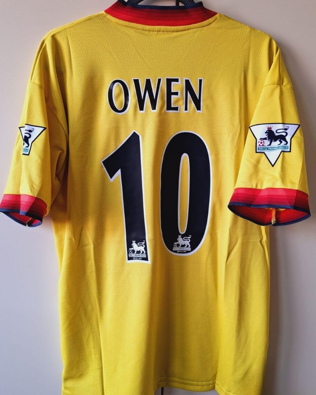 La maglia del Liverpool con il numero 10 di MICHAEL OWEN rappresenta al meglio la storia dei Reds nella stagione 1998-99. Arricchita dalle patch della Premier League su entrambe le maniche, evidenzia la personalizzazione del fenomenale giocatore inglese ad elevarne ulteriormente il prestigio