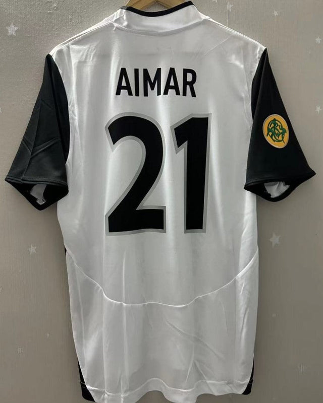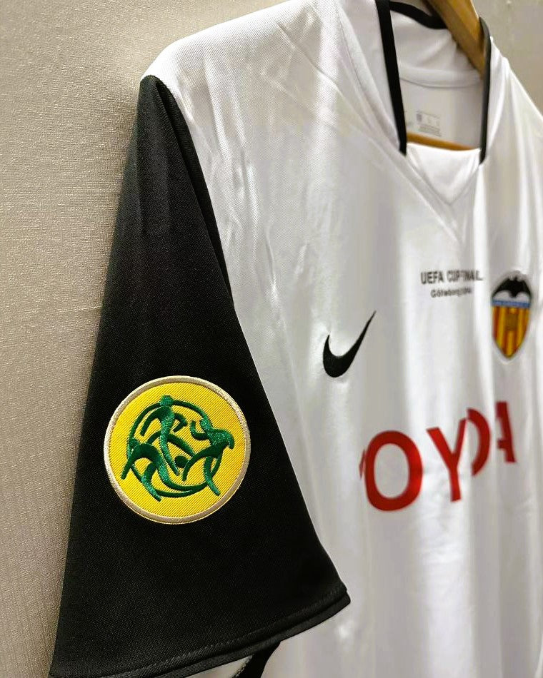 La storia e il trionfo del Valencia riassunti in questa maglia del 2003-04 con il numero 21 di PABLO AIMAR. Magnificamente realizzata, celebra la vittoria in Coppa Uefa con la patch sulla manica e la scritta in pieno petto a testimoniare la gloria del club spagnolo guidato dal "mago" argentino