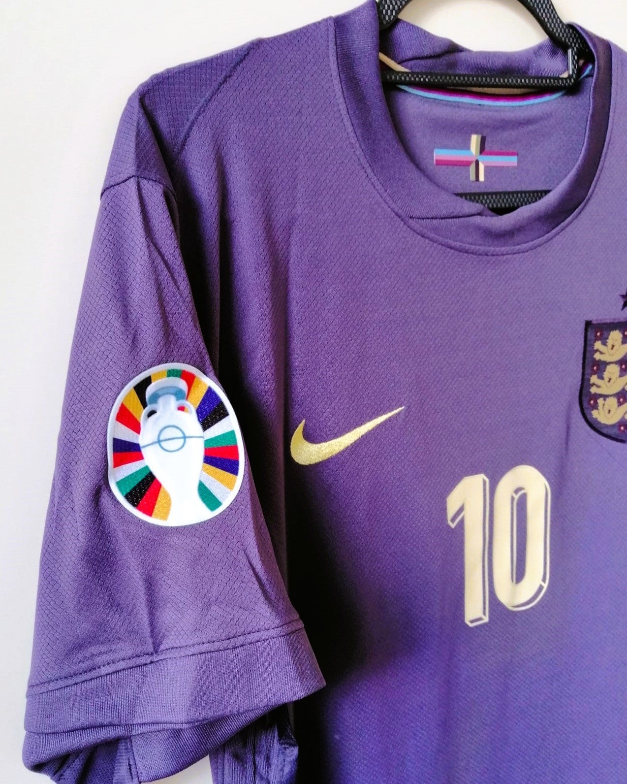 La maglia dell' Inghilterra con il numero 10 di JUDE BELLINGHAM, rappresenta al meglio la storia e la forza della nazionale inglese. Arricchita sulle maniche dalle patch di Euro '24, ha la personalizzazione del fenomenale inglese ad aggiungere ulteriore prestigio ad una divisa imperdibile