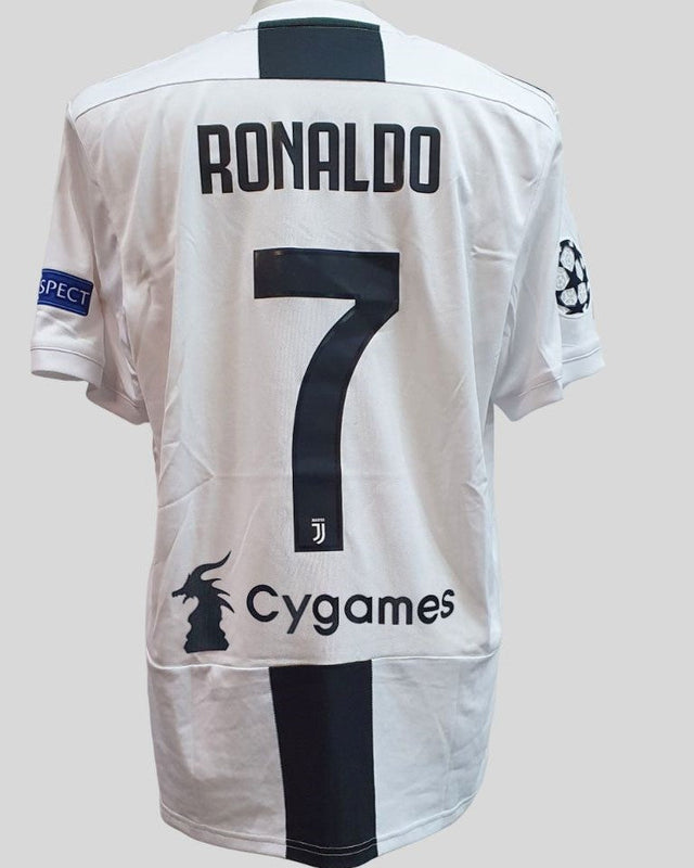 La storia del calcio scrive un nuovo capitolo nella stagione 2018-19, quando CRISTIANO RONALDO con il suo inseparabile numero 7 approda alla Juventus. Questa maglia ne è la testimonianza, con le patch della Champions League insieme allo scudetto e alla coccarda della Coppa Italia a creare il giusto palcoscenico per un nuovo capitolo del leggendario CR7