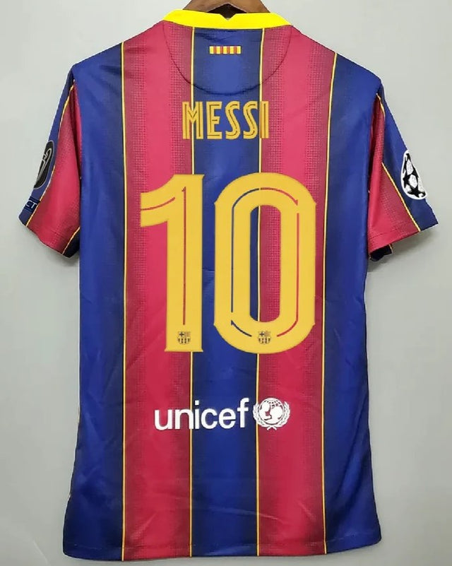 The final chapter of a legendary story lives again thanks to LIONEL MESSI's number 10 shirt for the 2020-21 season. This Nike masterpiece, enriched with Champions League patches, represents the last one worn by the Argentinean star with the Catalans, putting an end to a marriage that seemed indissolubly eternal