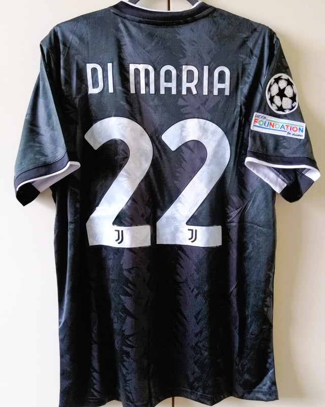 L'eleganza e il talento nella maglia della Juventus della stagione 2022-23 con il numero 22 di ANGEL DI MARIA. Questo capolavoro in total black, arricchito dalla patch della Champions League, evidenzia la forza del club bianconero e la classe del talentuoso giocatore argentino