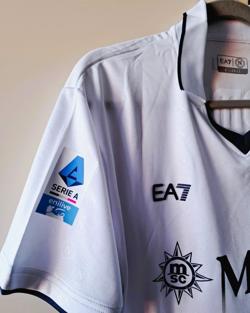 La maglia del Napoli della stagione 2024-25 con il numero 8 di SCOTT Mc TOMINAY celebra la tradizione del club azzurro. Arricchita dalla patch della Serie A, esalta la personalizzazione del forte centrocampista scozzese ad elevarne ulteriormente il prestigio