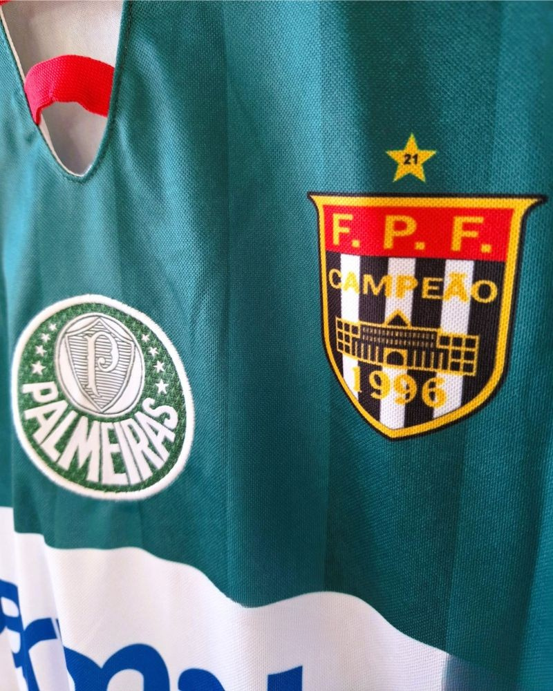 Riscopri il talento del calcio brasiliano grazie alla maglia del Palmeiras della stagione 1996-97 con il numero 10 di RIVALDO. Arricchita dal logo che celebra il titolo di Campeao 1996, evidenzia la personalizzazione del talento brasiliano ad elevarne ulteriormente il prestigio