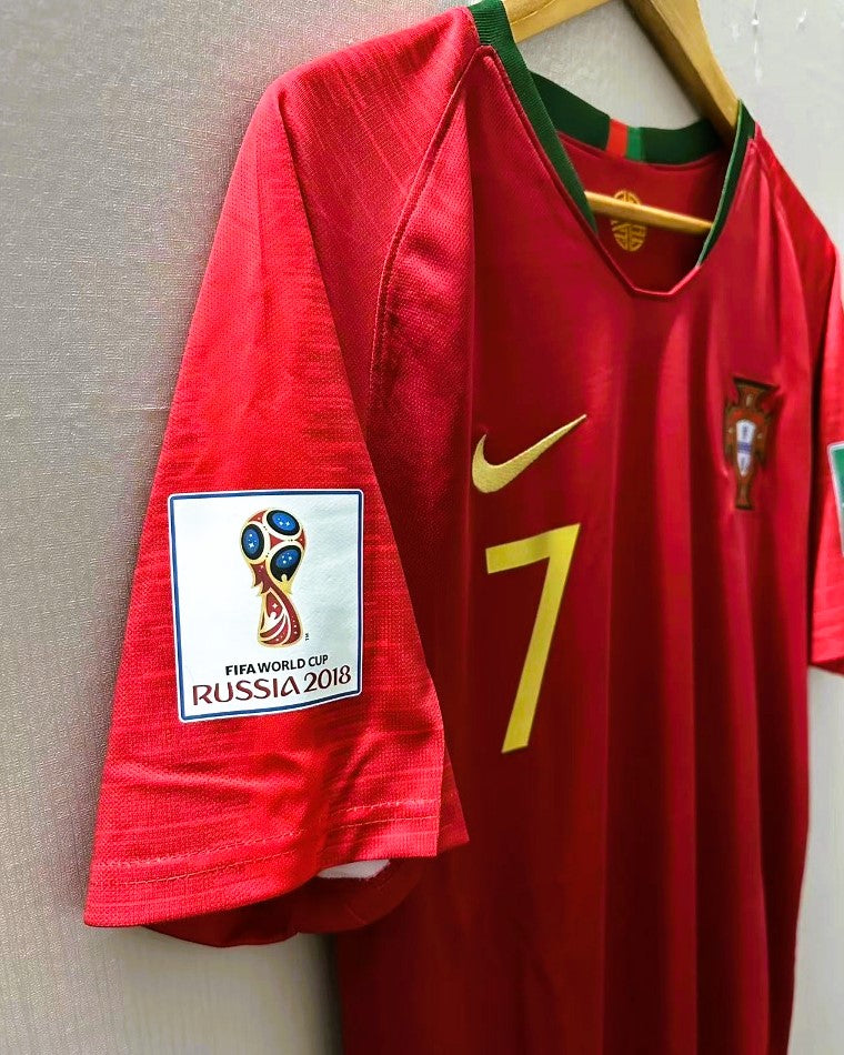 Rivivi la storia e la gloria del Portogallo con la maglia 2018-2019 indossata con il numero 7 da CRISTIANO RONALDO. Questo autentico capolavoro è la testimonianza del fenomenale portoghese, con le patch di Russia '18 su entrambe le maniche a elevare ulteriormente la bellezza di questa divisa