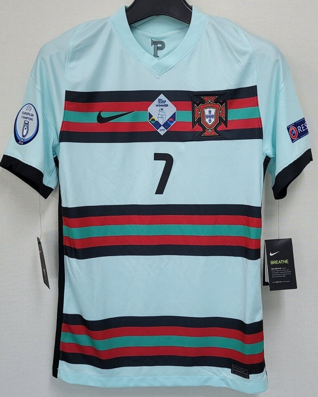 Explore the elegance and creativity of football thanks to the Portugal 2020-21 season jersey with CRISTIANO RONALDO's number 7. This design masterpiece created by Nike (with the Euro 2020 and Nations League victory patches) best represents the talent and strength of the Portuguese national team, extraordinarily led by the phenomenal CR7