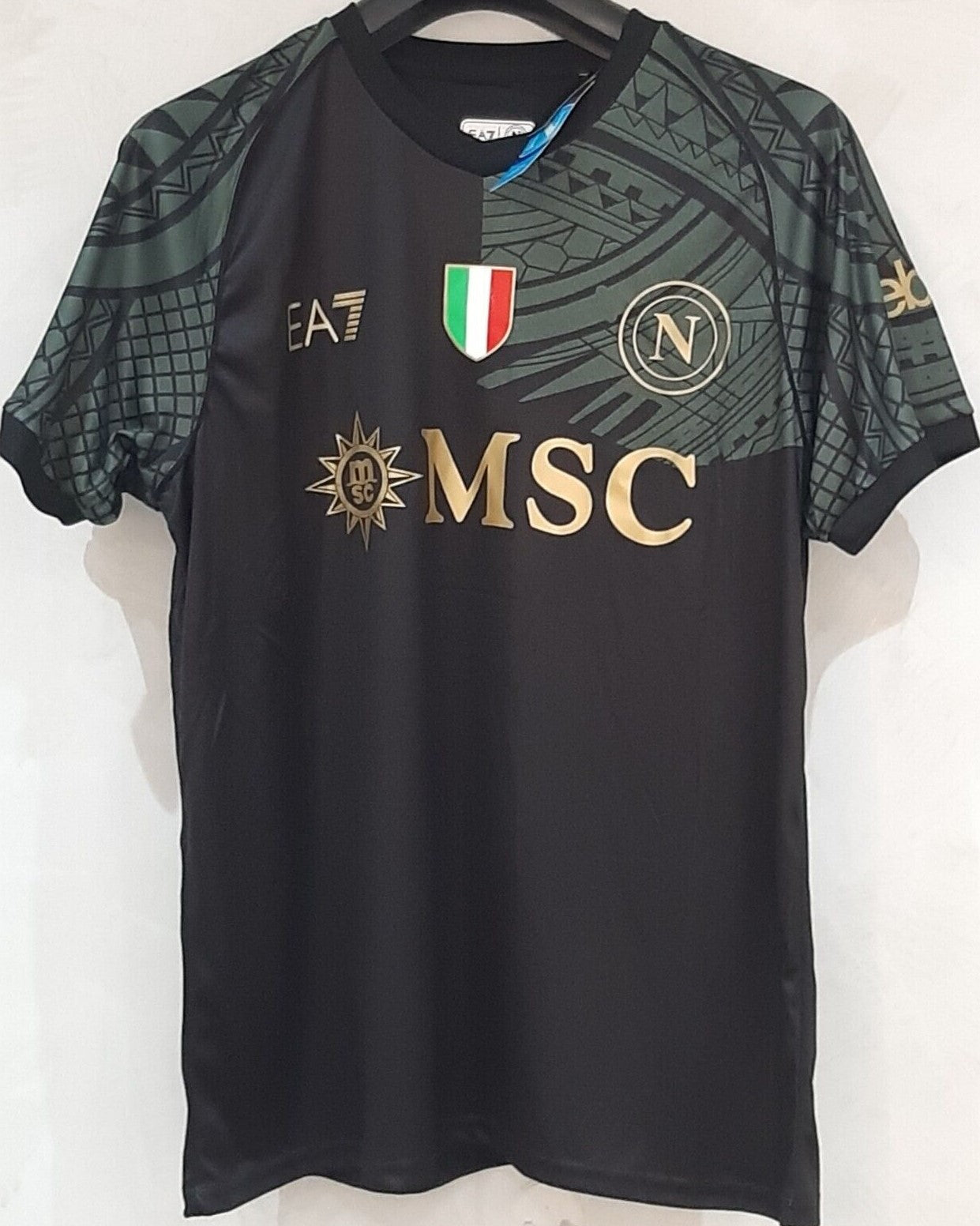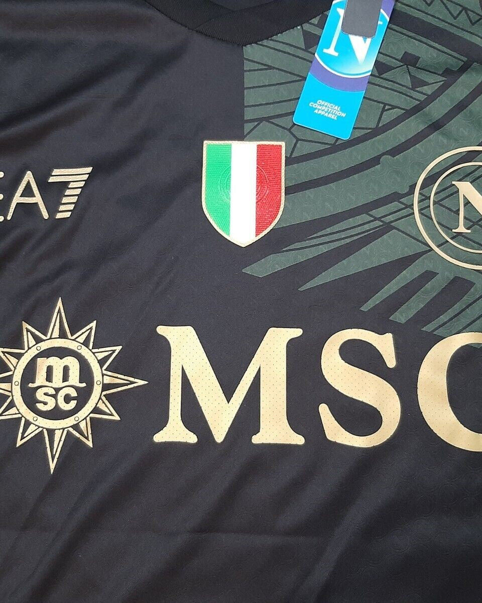 Napoli's jersey for the 2023-24 season customised with the 77 of KHVICHA KVARATSKHELIA bears witness to the partenopei's historic victory. Masterfully crafted by EA7, it highlights the Scudetto on the chest of the Italian Champions, a title conquered 3 decades later and which has generated an unstoppable river of joy mixed with passion and happiness in the city.