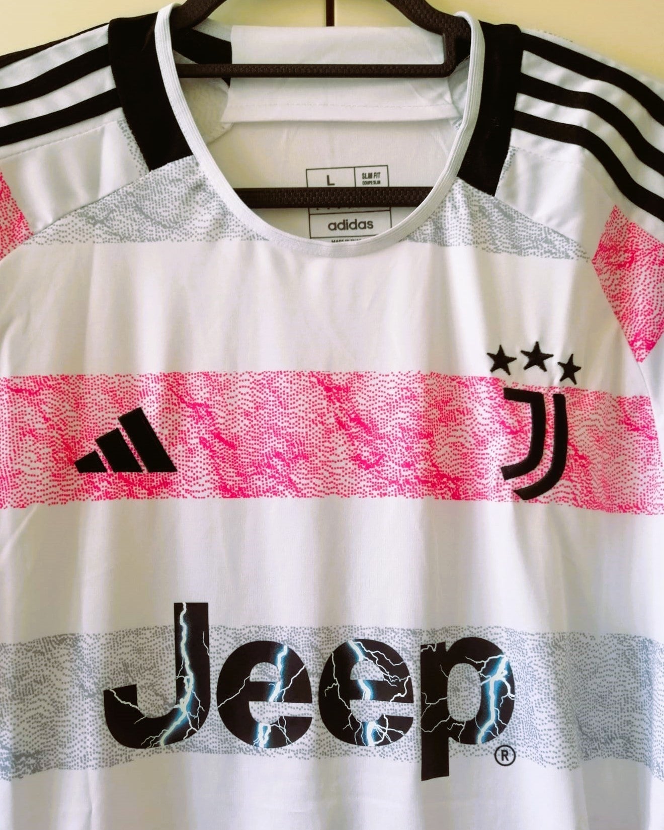 Esplora la straordinaria fusione di forza ed eleganza con la maglia della Juventus stagione 2023-24 indossata con il numero 10 da PAUL POGBA. Questo capolavoro arricchito dalla patch della Champions League, è un inno alla creatività e all'innovazione in un audace e riuscitissima unione rosa-nero con la personalizzazione del fenomenale francese