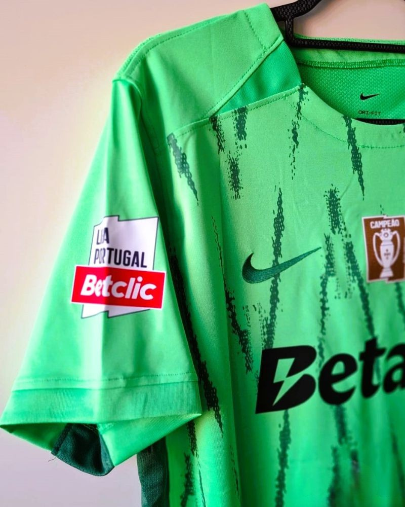 La maglia dello Sporting CP della stagione 2024-25 con il numero 9 di VIKTOR GYOKERES celebra la forza e il prestigio del club portoghese. Arricchita dalla patch della La Liga e da quella di campioni in carica in pieno petto, evidenzia la personalizzazione del bomber svedese ad elevarne ulteriormente il prestigio