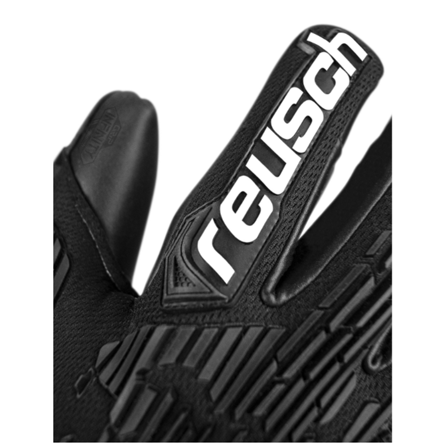 L'Attrakt Freegel Infinity Finger Support in total black è un guanto da portiere protettivo pensato per prestazioni professionali su erba Notetica. Il lattice Reusch Grip Infinity offre la massima durata, una buona presa e un'elevata resistenza all'abrasione grazie alla sua struttura ad alta densità. Le spine Finger Support garantiscono una stabilità affidabile su tutte e cinque le dita e il Freegel; l'applicazione di silicone sul dorso conferisce elevata flessibilità, leggerezza e allo stesso tempo il supporto e la stabilità necessari per la presa e i pugni. L'Evolution Negative Cut con soffietti in lattice e il morbido dorso in tessuto forniscono una vestibilità molto precisa.