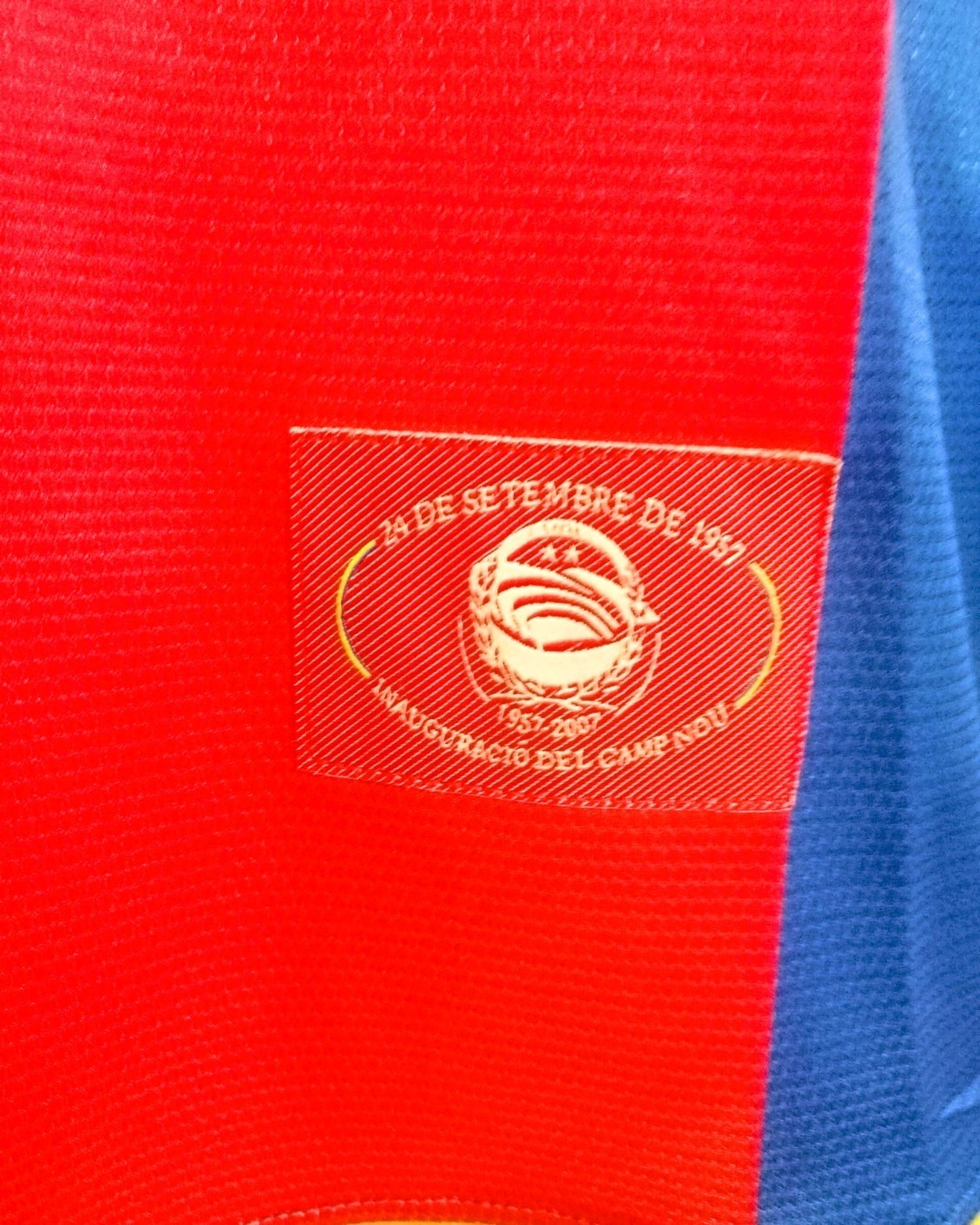 Welcome to the heart of the football legend with the Barcelona 2007-08 shirt and RONALDINHO's number 10. This masterpiece enriched with the La Liga patch and the 50th anniversary commemorative inscription of Camp Nou around the coat of arms, is a successful combination of the club's prestige and the class of the phenomenal Brazilian
